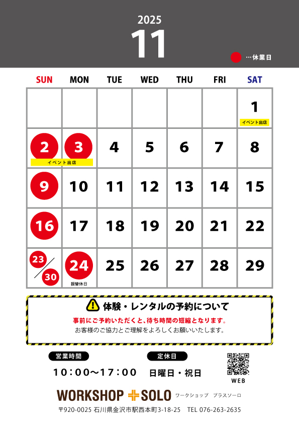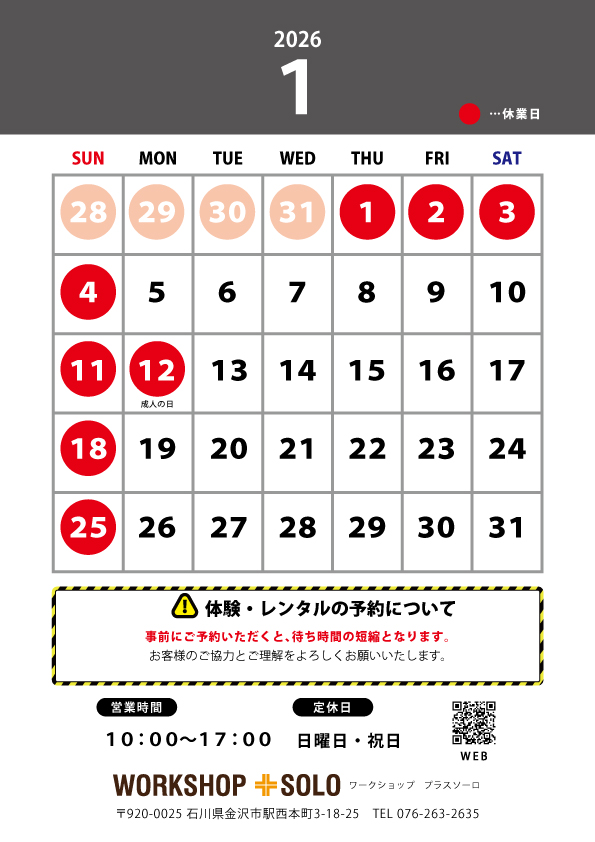 ワークショップ(体験教室)、レンタルのご予約はこちらから