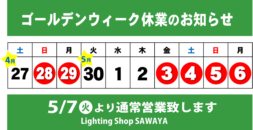 【休業期間】 4月28日(土)~4月29日((月)・5月3日(金)〜6日(月) ※休業中のお問い合わせは、5月7日(火)より順次対応させていただきます。